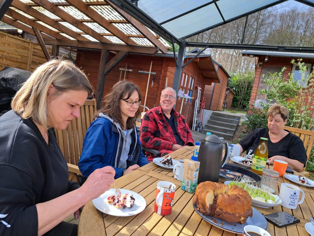 ☕🍰 Bei Kaffee und Kuchen saßen alle ausgelassen und zufrieden nach getaner Arbeit zusammen. Die leckeren Kuchen haben Monika, Claudia und Manuela mitgebracht, Simone brachte zusätzlich noch Käsehäppchen mit und Andrea sorgte für den Kaffee.