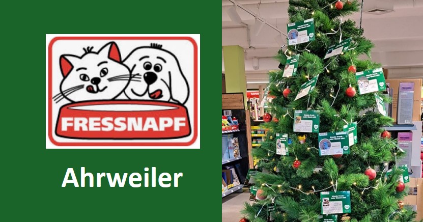 Mit dem Wunschbaum im Fressnapf Ahrweiler kleine Träume wahr werden lassen🎄😻 Im Fressnapf Ahrweiler steht im Dezember ein liebevoll geschmückter Weihnachtsbaum mit Karten mit Wünschen für unsere Schützlinge 💝 So geht’s: Pflückt einen Wunsch eurer Wahl vom Weihnachtsbaum, sucht das passende Geschenk dazu und zahlt an der Kasse. Anschließend könnt ihr euer Geschenk unter den Baum legen 🎁🎄 Im Namen unserer Schützlinge sagen wir schon jetzt von ❤️en DANKE 🙏🏻🐈 Zurück zur Übersicht