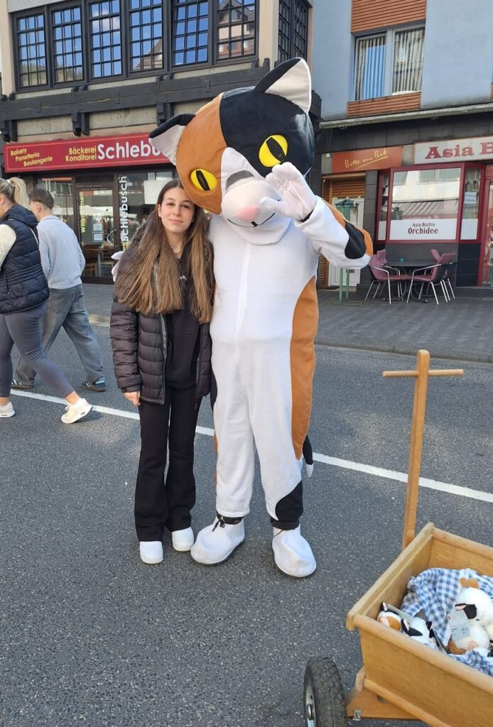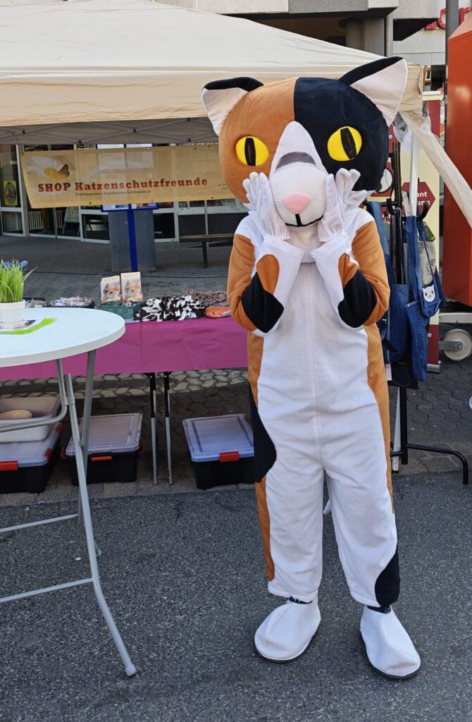 Kaliko, die große Katzen-Maskottchen ging mit Bollerwagen und Plüschkatzen umher, begrüßte Besucher und brachte Kinderaugen zum Glänzen. Denn Kaliko die Hand schütteln ist etwas ganz Besonderes!😻