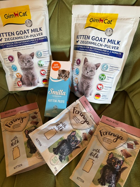 Lieben Dank an Viola Moitzfeld für die Aufzuchtmilch und das Mjamjam Kittenfutter, das können wir sehr gut gebrauchen😽